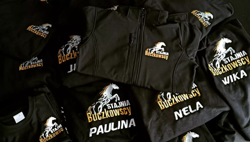 Znakujemy w ten sposób głównie koszulki ale także bluzy, softshelle i np. worki. Nie możemy tą metodą robić nadruku na polarach, materiałach wodoodpornych i grubych kurtkach.