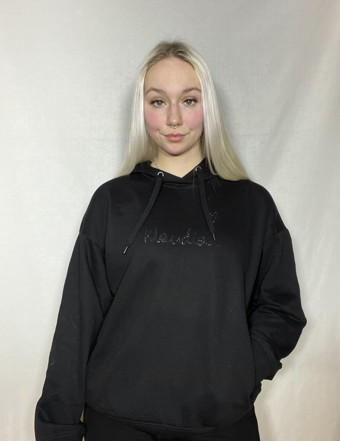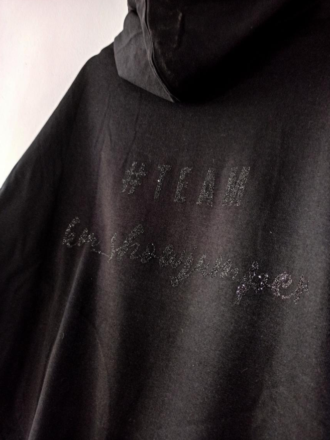 Bluza posiada z przodu brokatowy podpis Klaudii, a z tyłu brokatowy napis #team km_showjumper