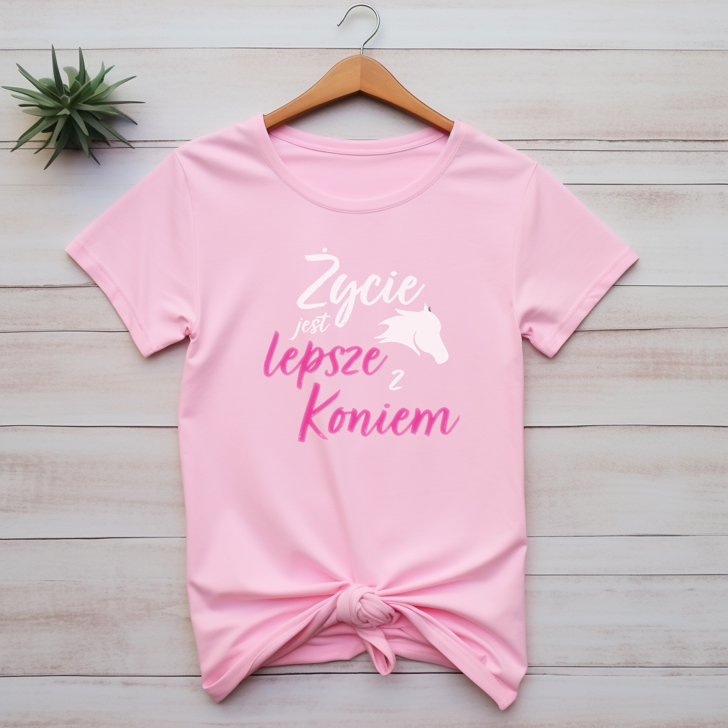 Koszulka damska z nadrukiem - Życie jest lepsze z koniem