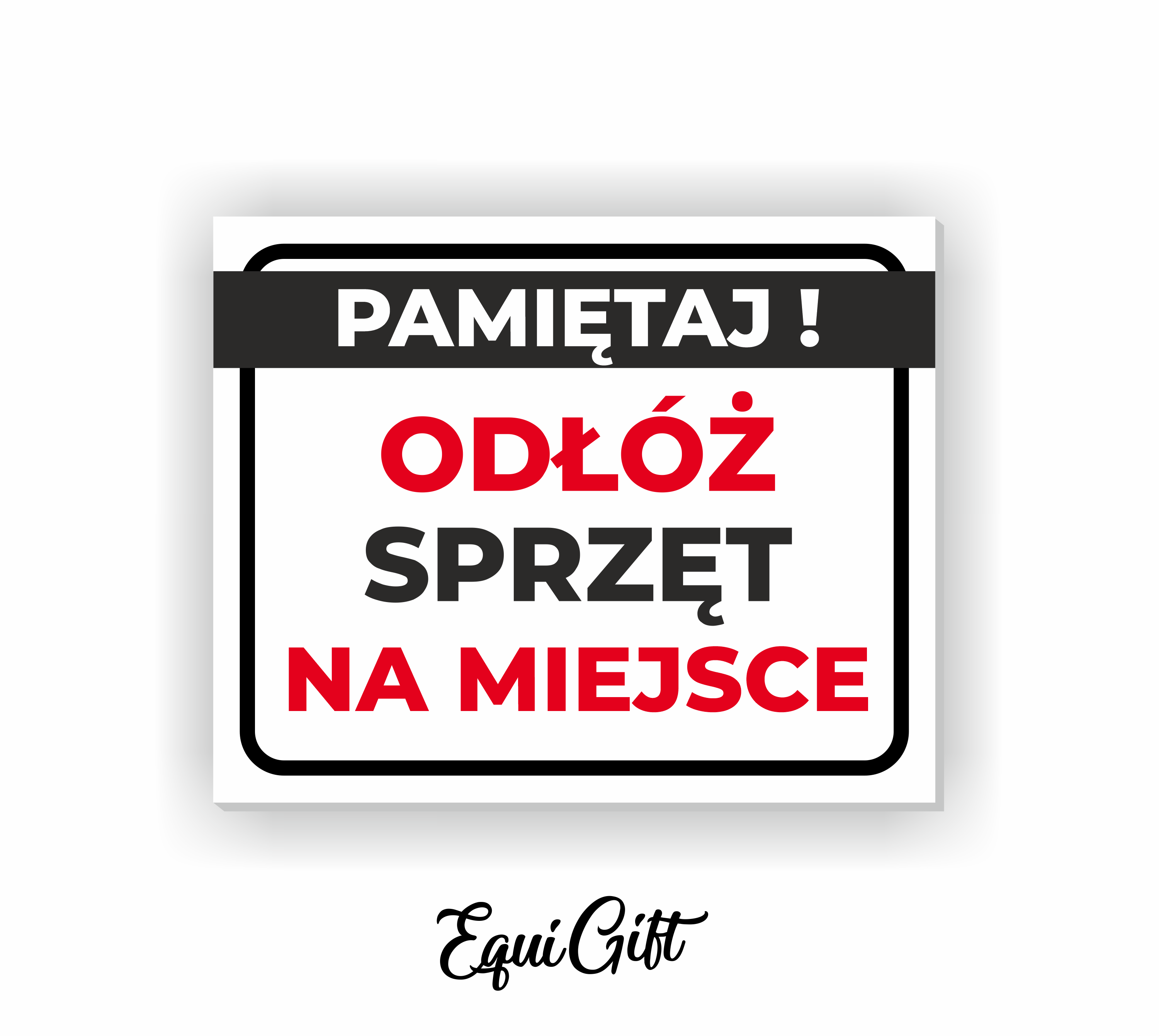 Ostrzegawcza Tabliczka "ODŁÓŻ SPRZĘT NA MIEJSCE" - Idealna do Stajni, Siodlarni i Hali