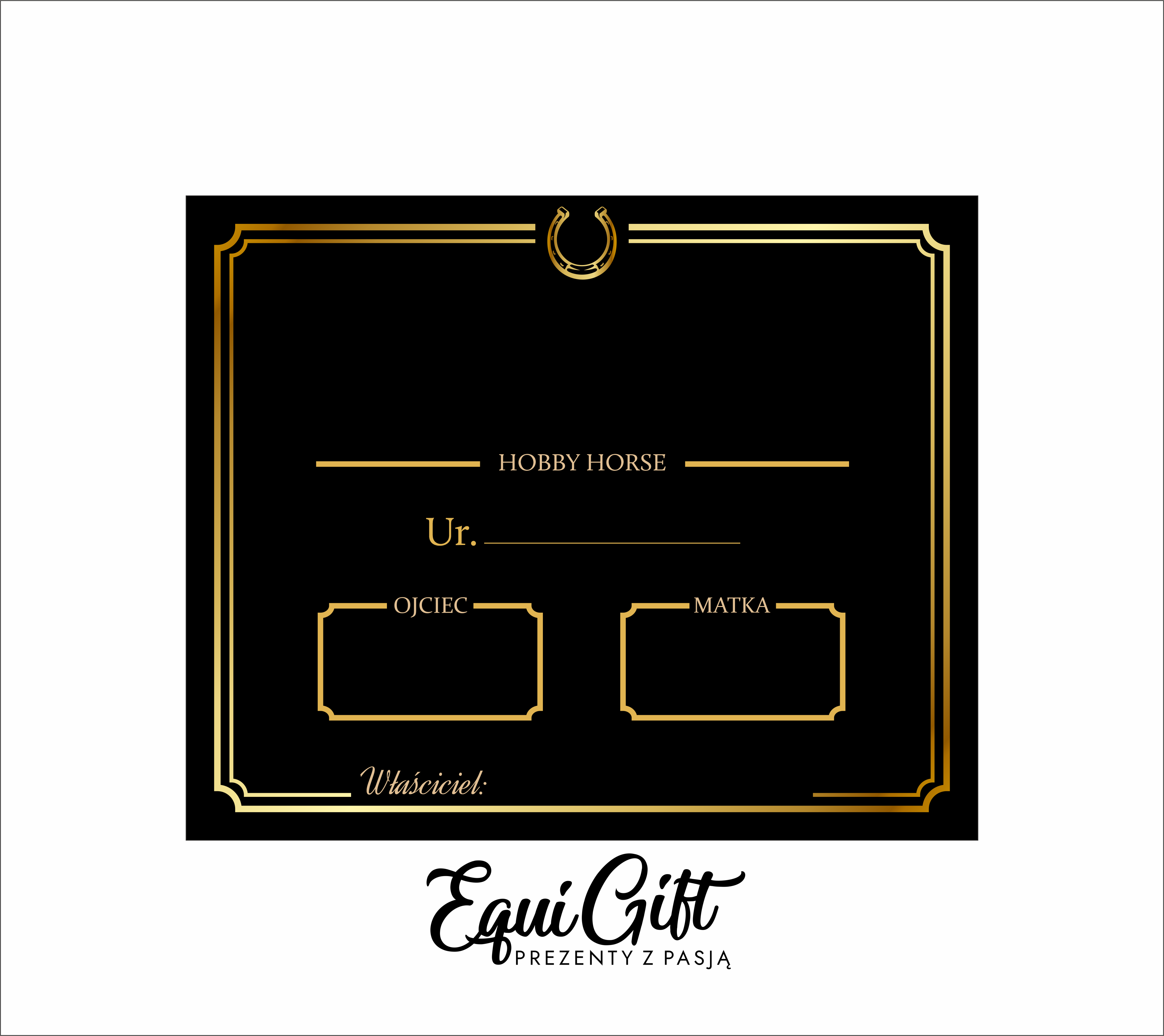 Personalizacja do Twoich potrzeb: Czy to imię Twojego hobby horse'a, jego data urodzenia czy pochodzenie - możesz wpisać na tabliczce wszystko, co tylko zechcesz. To Twoja przestrzeń do wyrażania siebie i swojej pasji.