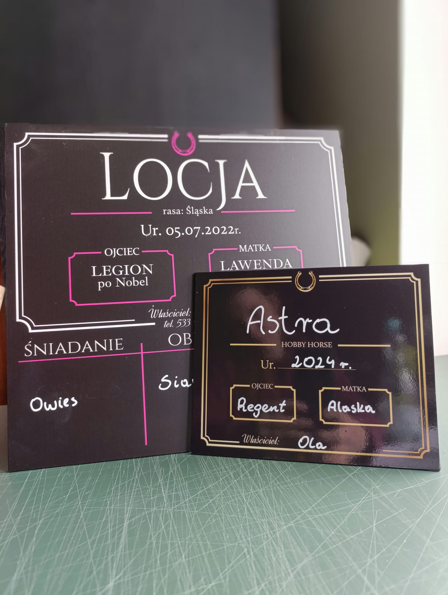 Personalizacja do Twoich potrzeb: Czy to imię Twojego hobby horse'a, jego data urodzenia czy pochodzenie - możesz wpisać na tabliczce wszystko, co tylko zechcesz. To Twoja przestrzeń do wyrażania siebie i swojej pasji.