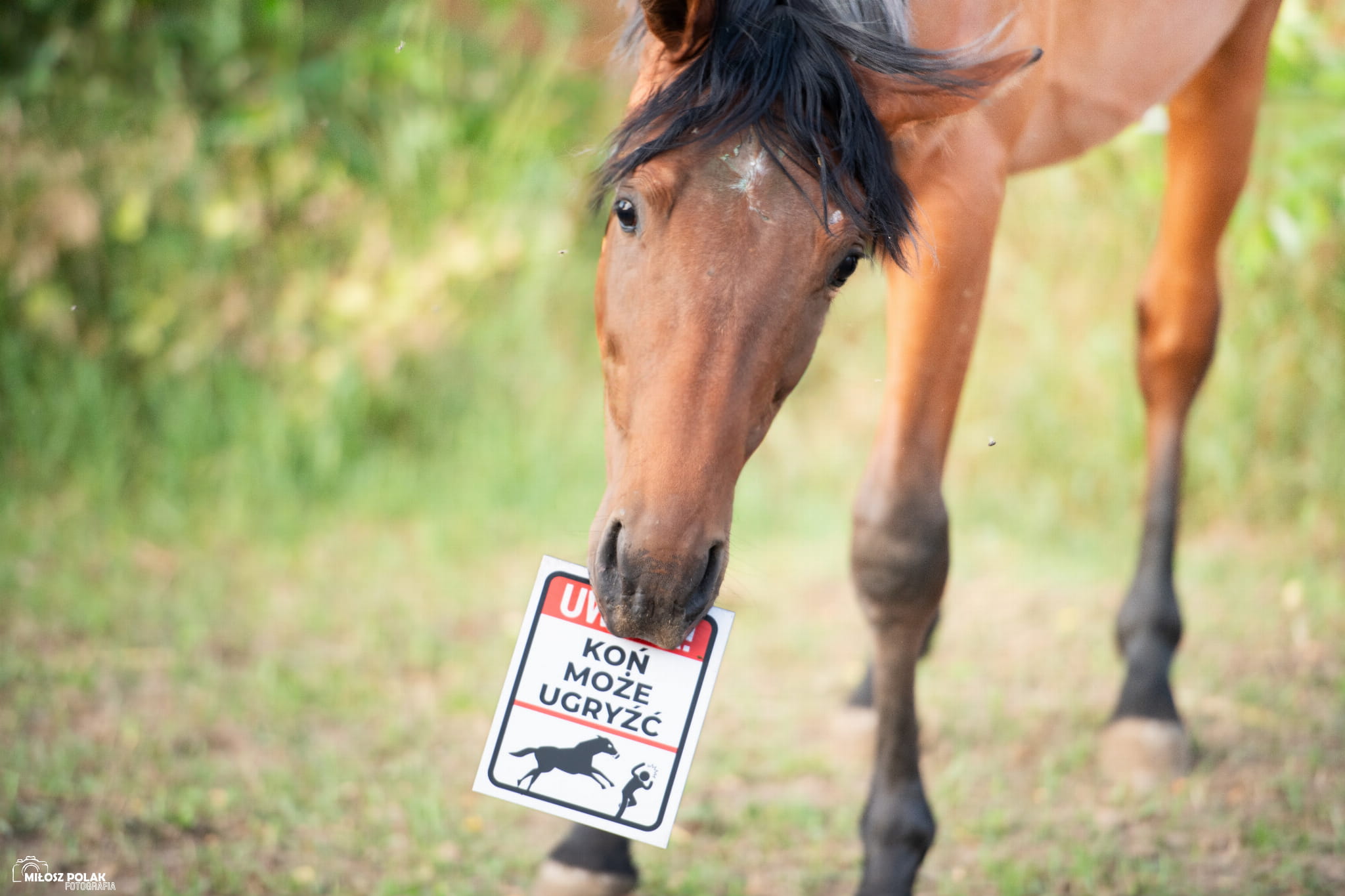 Tabliczka ostrzegawcza z grafiką o nie dokarmianiu konia po ochwacie. Idealna gdy zwykła informacja o dokarmianiu nie jest wystarczająca. Wymiar tabliczki to 18cm x 22cm
